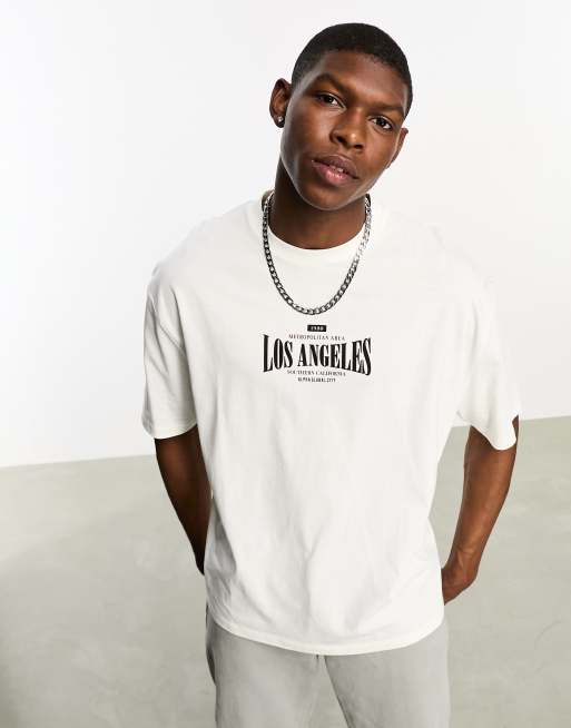 ASOS DESIGN oversized t-shirt in off white with city chest print