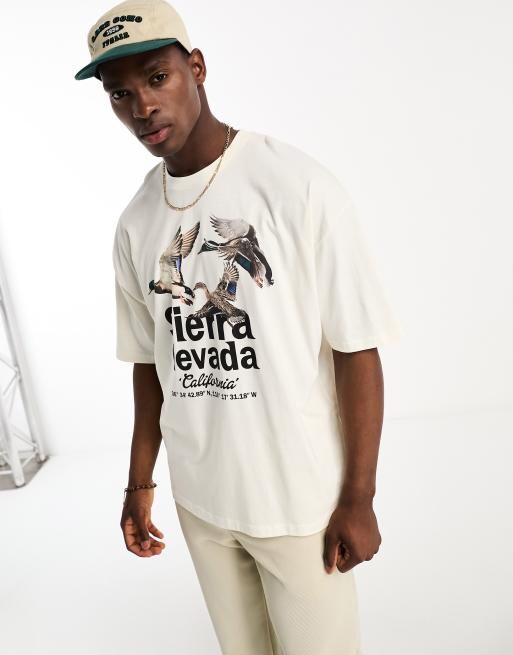 ASOS DESIGN oversized t-shirt in off white with photographic duck print