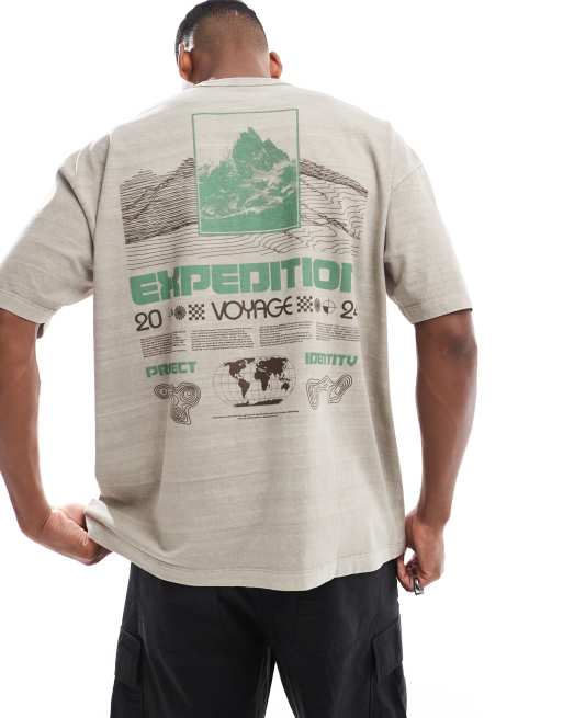 ASOS DESIGN oversized t-shirt in washed beige with outdoor back print