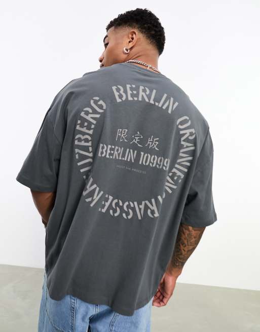 ASOS DESIGN oversized T-shirt in washed black with Berlin text back print
