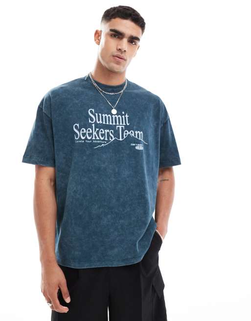 ASOS DESIGN oversized t-shirt in washed navy with text front print