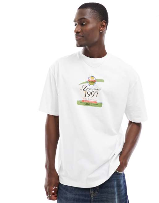 ASOS DESIGN oversized T-shirt in white with beermat chest print