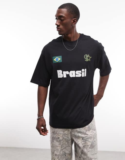 ASOS DESIGN oversized T-shirt with Brasil soccer graphic in black.
