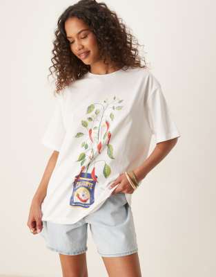ASOS DESIGN oversized T-shirt with chilli plant graphic in coconut milk