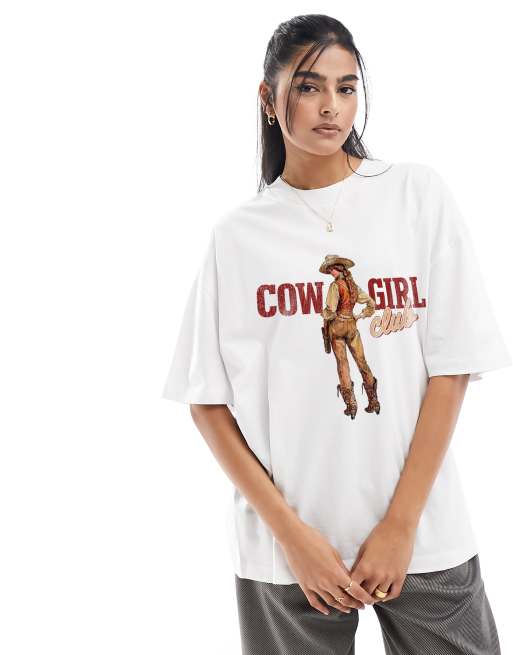 ASOS DESIGN oversized t-shirt with cowgirl club graphic in white