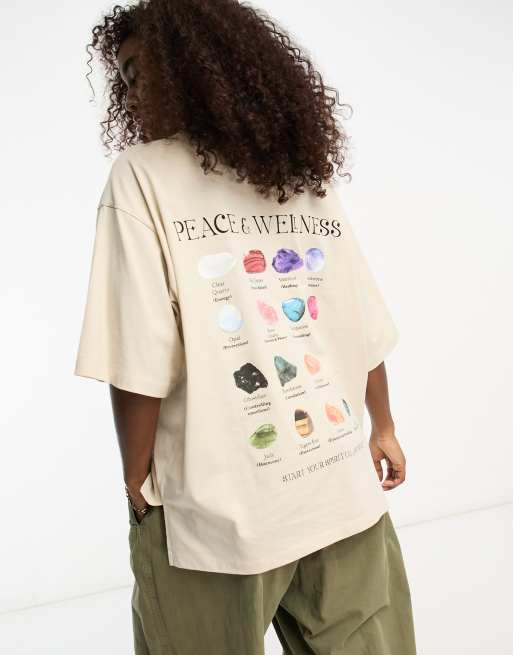 ASOS DESIGN oversized t-shirt with crystals back print graphic in stone