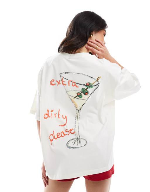 ASOS DESIGN oversized T-shirt with dirty martini cocktail in cream