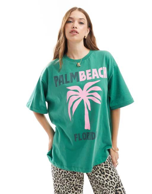 ASOS DESIGN oversized t-shirt with florida palm tree graphic in green