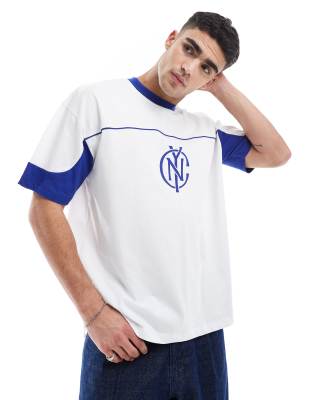 ASOS DESIGN oversized t-shirt with paneling and sports graphic in white