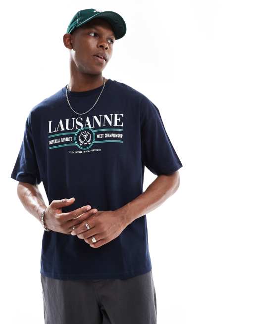 ASOS DESIGN oversized T-shirt with sports graphic in navy