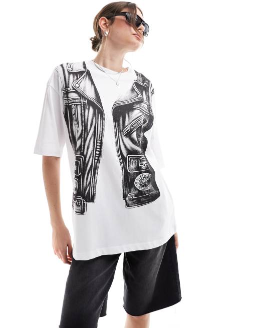 ASOS DESIGN oversized t-shirt with vest print graphic in white