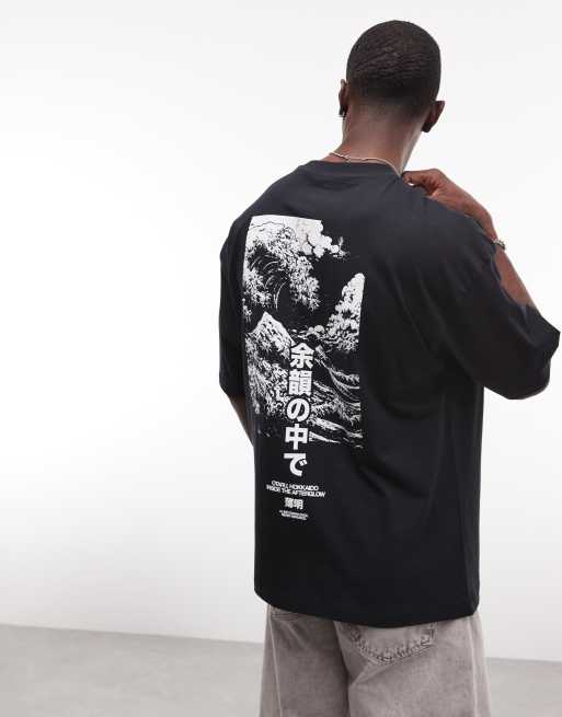 ASOS DESIGN oversized T-shirt with wave graphic in black.