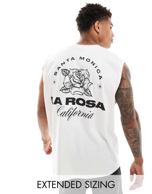 ASOS DESIGN oversized tank in white with Santa Monica back print