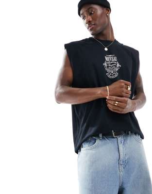 ASOS DESIGN oversized tank top in black with chest print