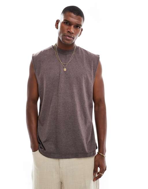 ASOS DESIGN oversized tank top in overdyed heathered brown
