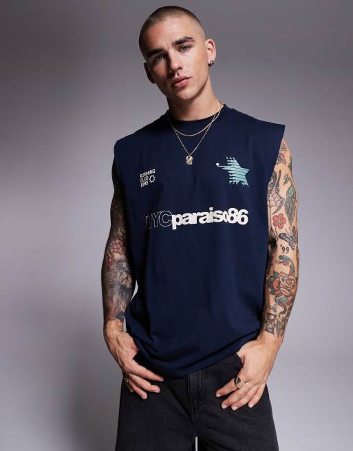 ASOS DESIGN oversized tank top with athletic graphic in navy