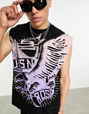 ASOS DESIGN oversized tank top with G 'n R print in washed black