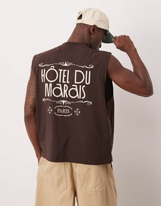 ASOS DESIGN oversized tank with city graphic in brown