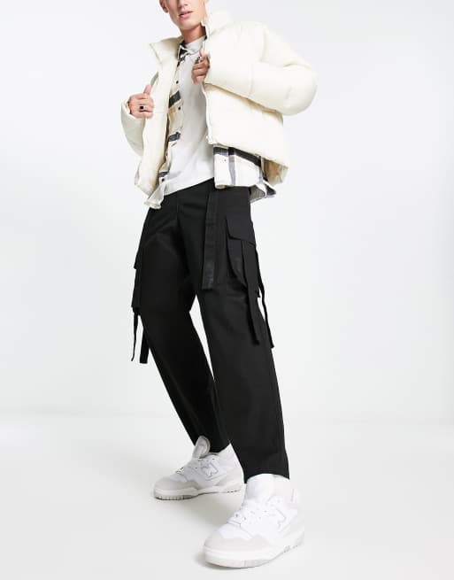 ASOS DESIGN oversized tapered cargo pants with strapping detail