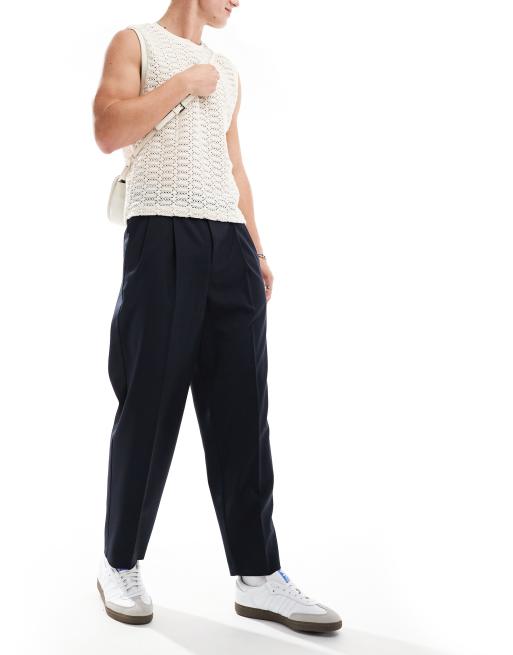 ASOS DESIGN oversized tapered dress pants with double pleat in navy