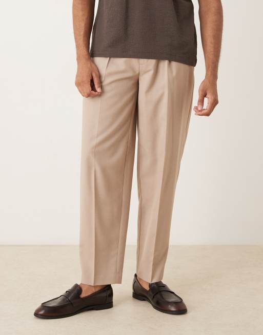 ASOS DESIGN oversized tapered dress pants with front pleats in stone flannel
