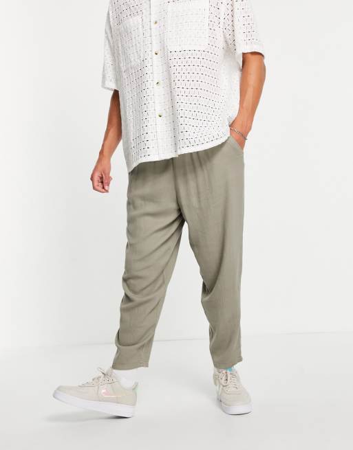 ASOS DESIGN oversized tapered lightweight pants with elasticized waist in khaki