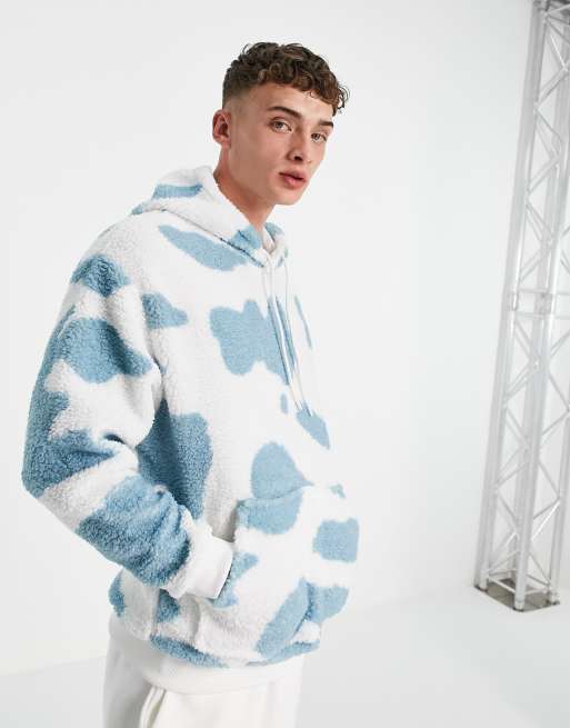 ASOS DESIGN oversized teddy fleece hoodie with all over cow print