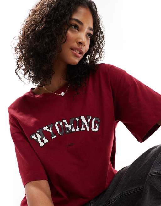ASOS DESIGN oversized tee with wyoming cow print graphic in wine