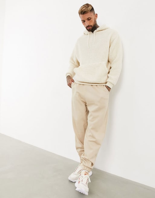 ASOS DESIGN oversized tracksuit in off-white teddy