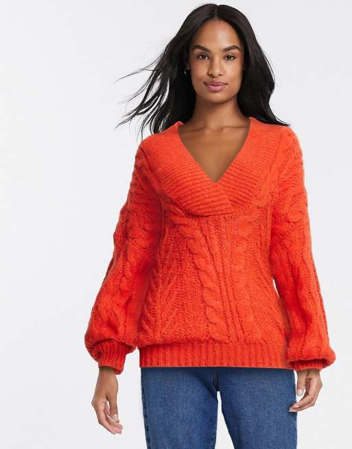 ASOS DESIGN oversized v neck chunky cable sweater