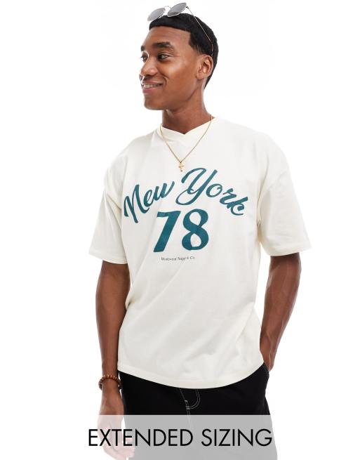 ASOS DESIGN oversized varsity t-shirt in off white with New York front print