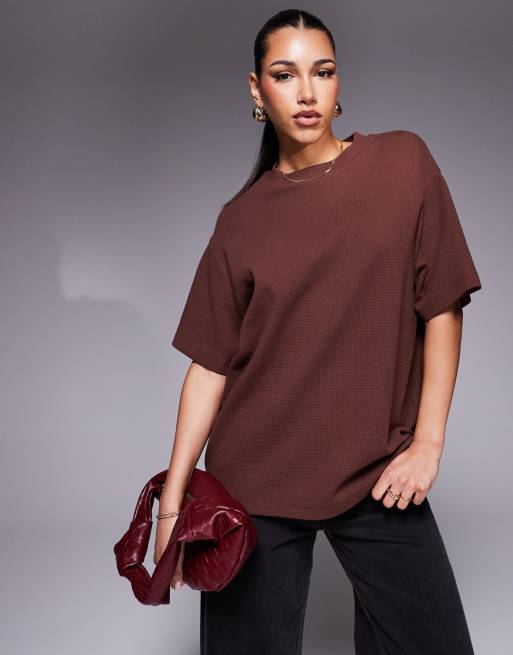 ASOS DESIGN oversized waffle short sleeve T-shirt in brown