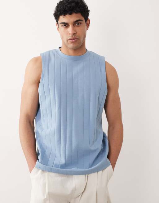 ASOS DESIGN oversized wide rib tank in blue