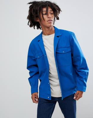 ASOS DESIGN oversized worker shirt with revere collar in blue