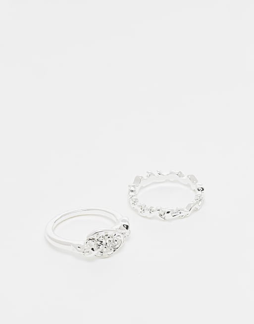 ASOS DESIGN pack of 2 real silver plated rings in molten design