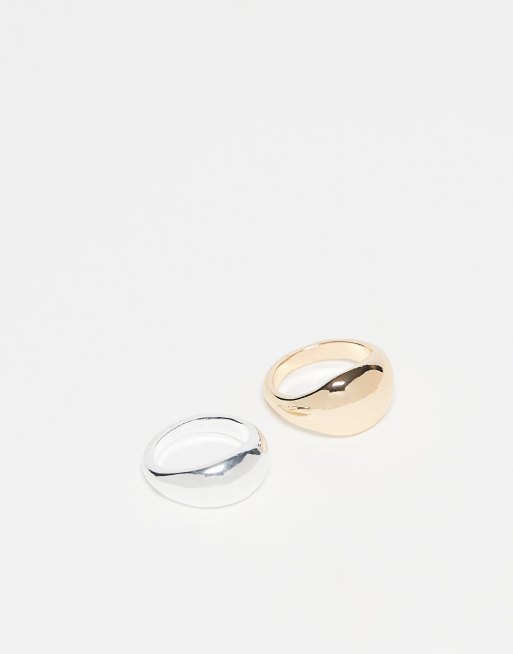 ASOS DESIGN pack of 2 rings with bubble design in mixed metal