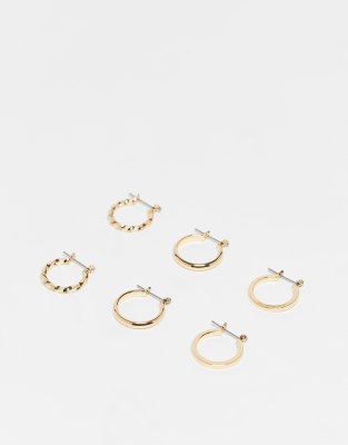 ASOS DESIGN pack of 3 20mm hoop earrings in gold tone