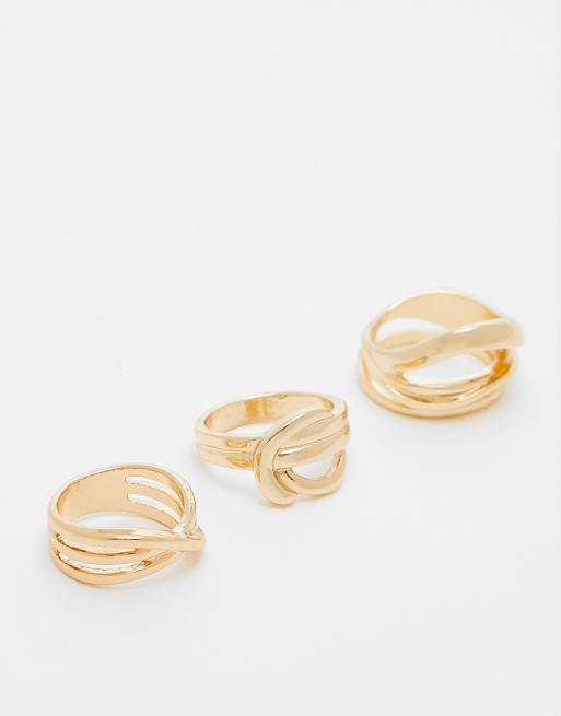 ASOS DESIGN pack of 3 rings with abstract wave detail in gold tone