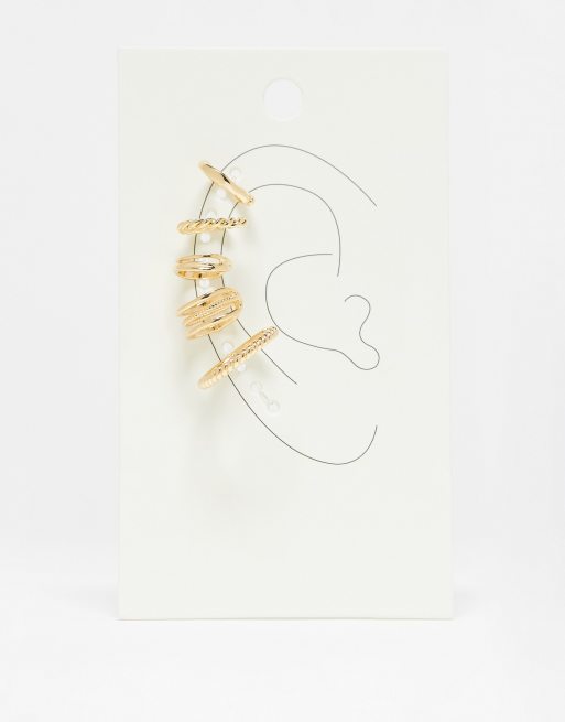 ASOS DESIGN pack of 5 ear cuffs with mixed detail in gold tone