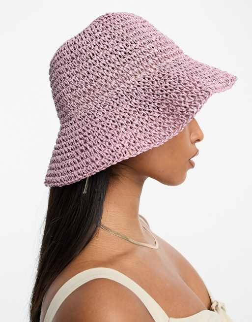 ASOS DESIGN packable straw crochet bucket hat in mixed pink
