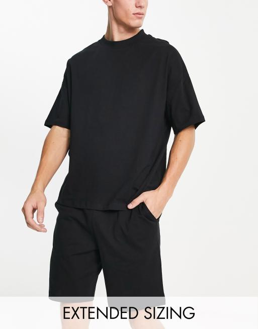 ASOS DESIGN pajama set with oversized t-shirt and shorts in jersey in black