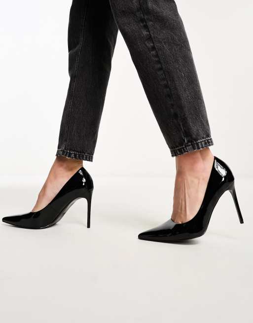 ASOS DESIGN Paphos pointed high heeled pumps in black patent