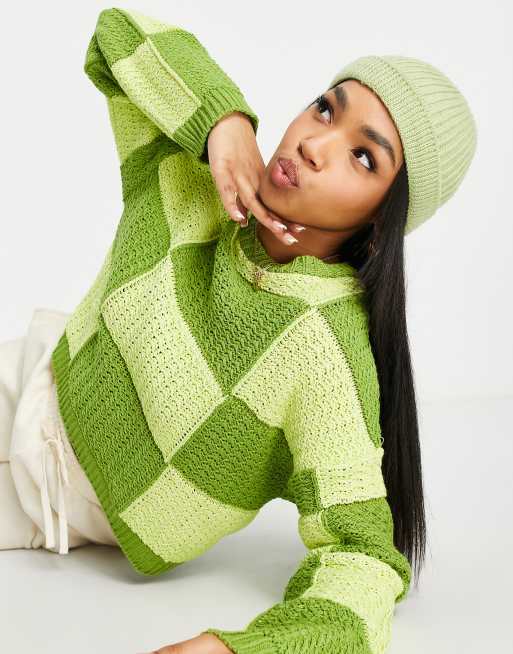 ASOS DESIGN patchwork sweater in green