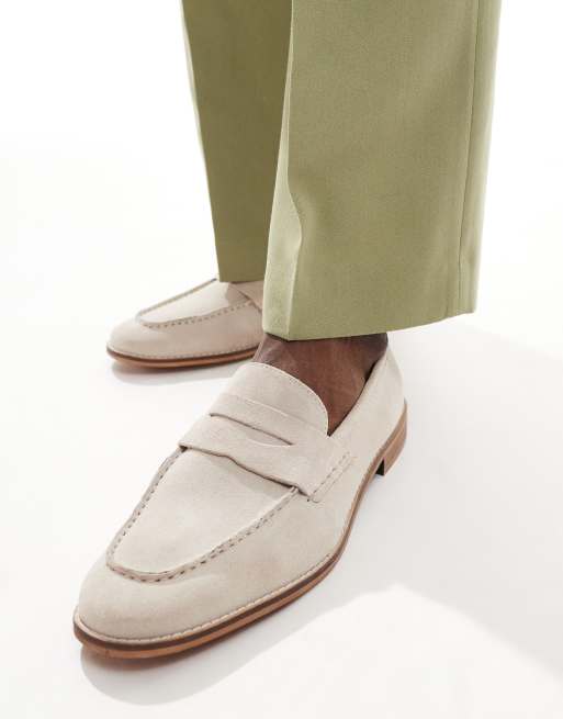 ASOS DESIGN penny loafers in stone suede