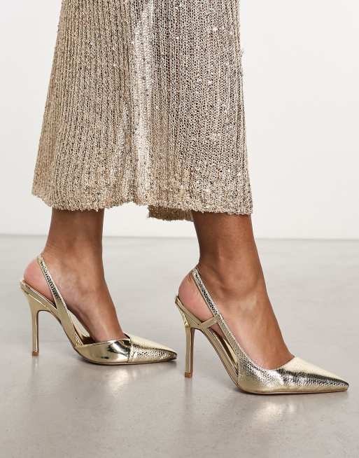 ASOS DESIGN Peri slingback high heeled shoes in gold