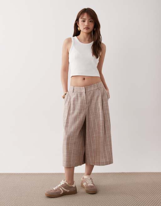 ASOS DESIGN Petite tailored culotte pants with linen in mink stripe