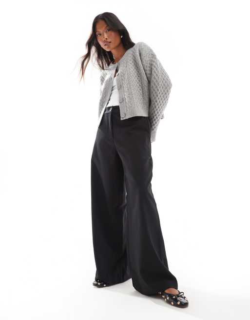 ASOS DESIGN Petite tailored relaxed straight leg pants in black