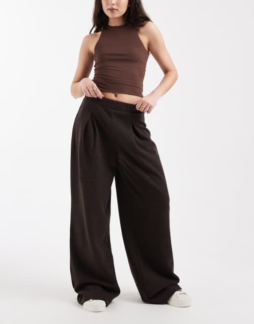ASOS DESIGN pleat wide leg pants in brown - part of a set