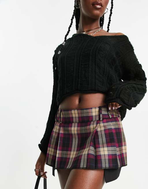 ASOS DESIGN pleated micro mini skirt in burgundy plaid