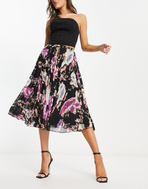 ASOS DESIGN pleated midi dress in dark abstract floral